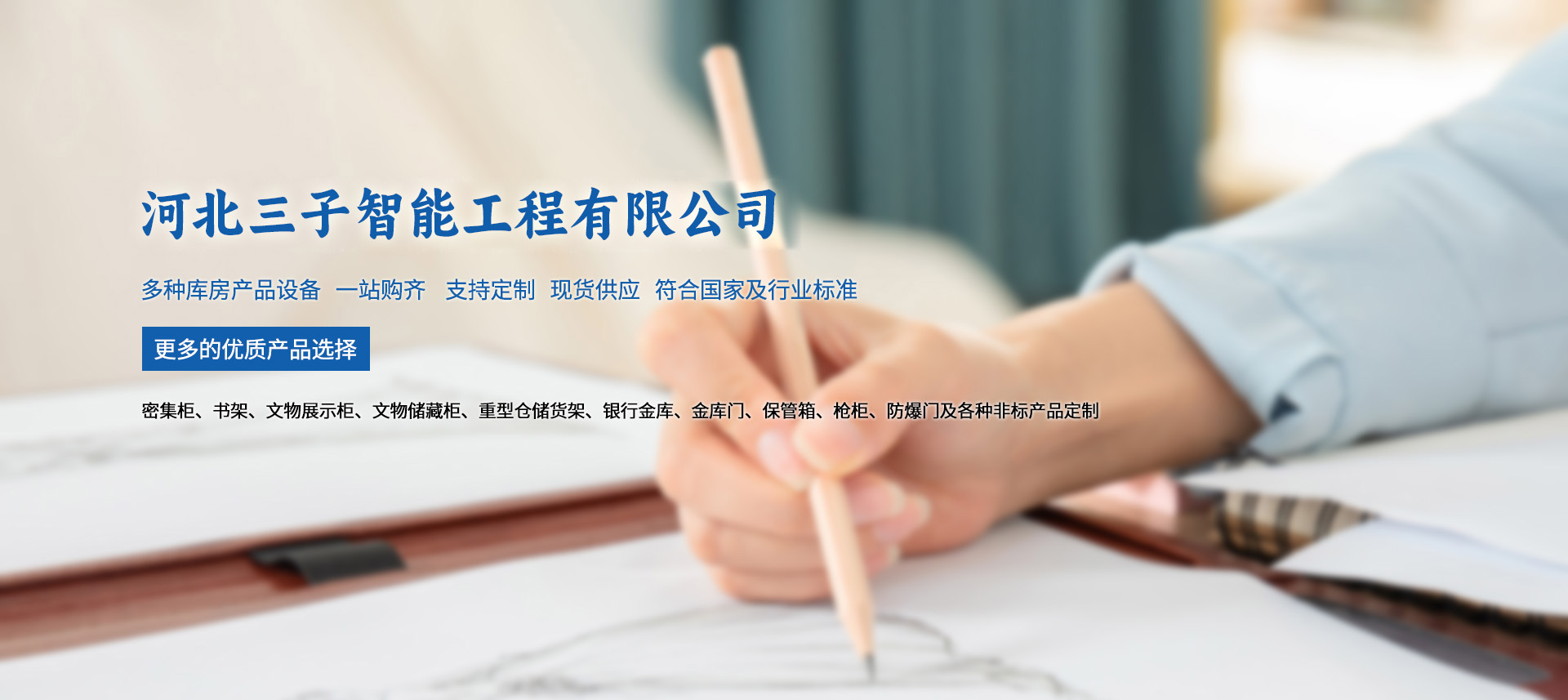 河北三子智能工程有限公司主營密集柜、書架、文物展示柜、文物儲藏柜、重型倉儲貨架、銀行金庫、金庫門、保管箱、槍柜、防爆門及各種非標產(chǎn)品定制。我們集研發(fā),設(shè)計,生產(chǎn),銷售和服務(wù)于一體,擁有國內(nèi)先進的設(shè)備和專業(yè)的制作團隊,我們秉承踏實,創(chuàng)新,責任的企業(yè)精神服務(wù)于檔案存儲,倉儲物流,農(nóng)業(yè)部,博物館,美術(shù)館,銀行,部隊,學校等多個領(lǐng)域,我們始終堅持用戶至上和精益求精為客戶提供優(yōu)質(zhì)的產(chǎn)品及服務(wù)。
